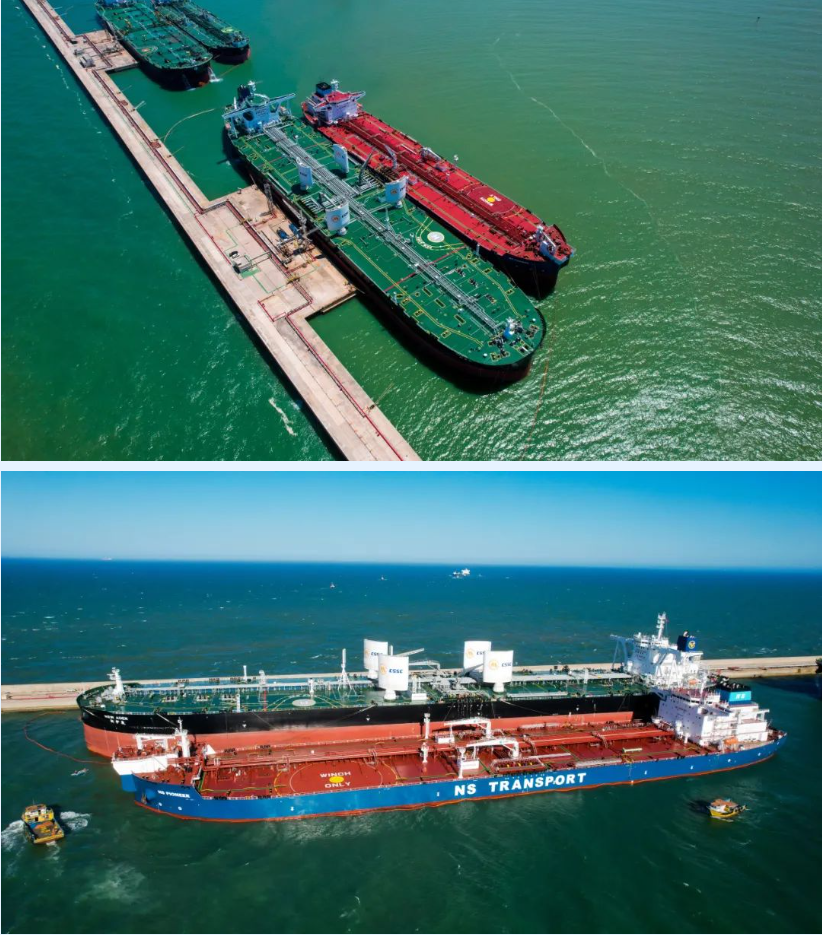 巴西当地时间2023年12月10日晚,招商轮船“新伊敦”轮在巴西阿苏港与中海油国贸自建DPST(动力定位穿梭油轮)“诺思先锋”轮顺利完成船对船过驳装货作业并安全离港。