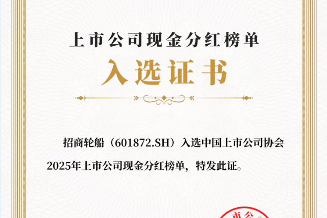 近日,中国上市公司协会编制发布《2025年上市公司现金分红榜单》。招商轮船凭借多年持续提高的分红比例和积极回报投资者的运营理念,入选“现金分红榜——股利支付率榜”。