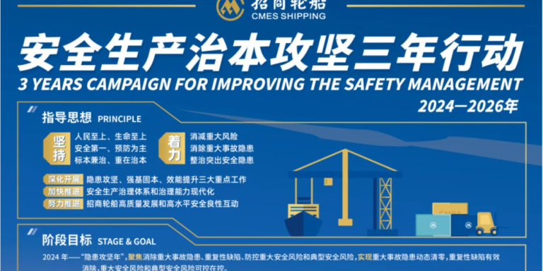 自安全生产治本攻坚三年行动启动以来,招商轮船紧紧围绕“以人为本,安全第一,预防为主,综合治理”的安全工作方针,全面提升安全管理水平。结合工作实际,招商轮船制定了安全生产治本攻坚三年行动工作方案,不断夯实安全生产工作基础,助力本质安全型企业建设。