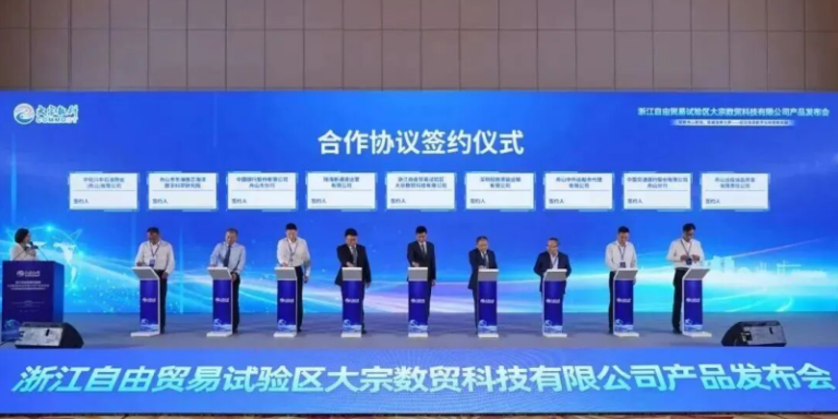 8月26日,浙江自由贸易试验区大宗数贸科技有限公司(简称大宗数科)成立大会暨产品发布会在舟山举行。来自航运物流、大宗商品领域的企业代表齐聚一堂,共商航运贸易数字化未来,开启产业链合作新篇章。