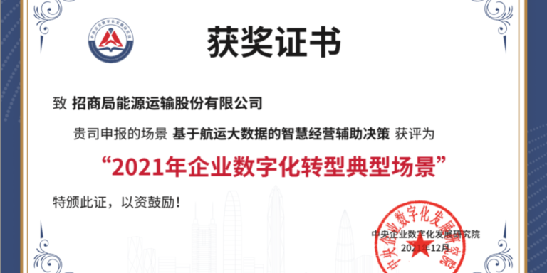 招商轮船数字化转型创新应用场景“船奇小智(MASCOT)——基于航运大数据的智慧经营平台”入选“2021年企业数字化转型典型场景”