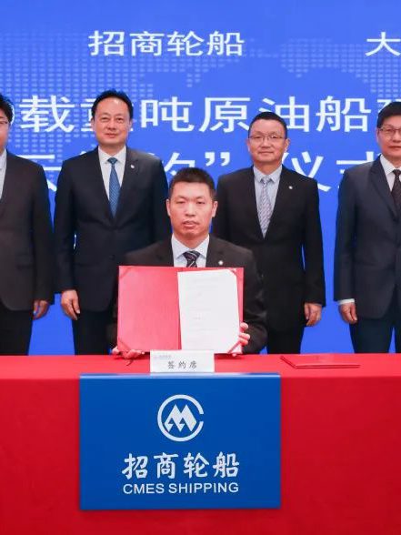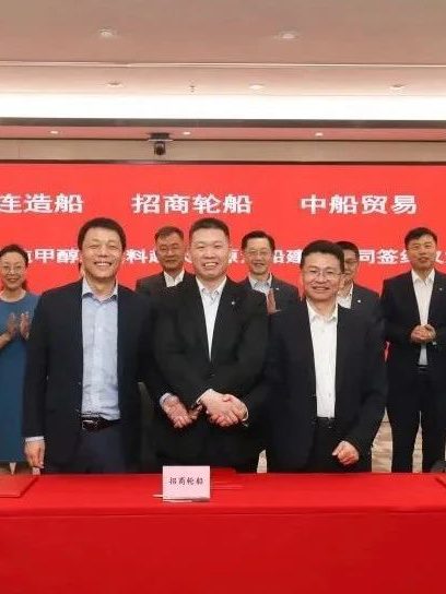 招商轮船与大连造船、中船贸易在深圳签署1艘30.6万吨甲醇双燃料动力智能VLCC建造合同。招商轮船总经理王永新、大连造船董事长杨志忠出席签约仪式并开展会谈交流。招商轮船副总经理徐晖、胡斌,大连造船副总经理何旭,中船贸易副总经理吴爱军出席签约仪式。