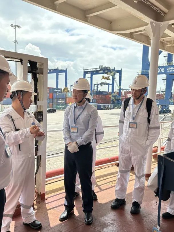 2023年6月24日,招商轮船总经理王永新在广州新沙港对“大企”轮进行安全检查并慰问船员。招商轮船副总经理、总船长兼安全总监胡斌,总经理助理兼香港明华总经理张金提陪同检查。