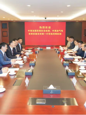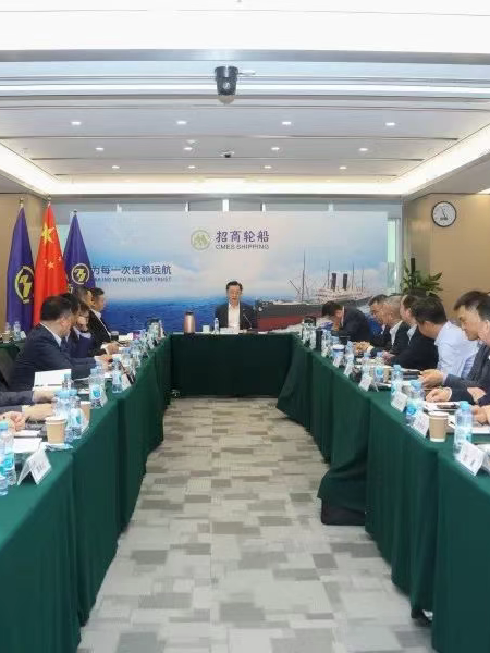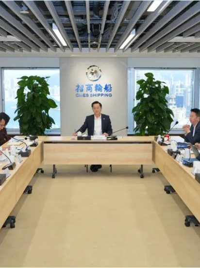 2023年11月21日下午,招商轮船总经理王永新在香港会见中海油国际贸易有限责任公司,贸运产业链深化合作,共同推动产业链数智化长远发展、碳交易管理等进行了讨论交流。