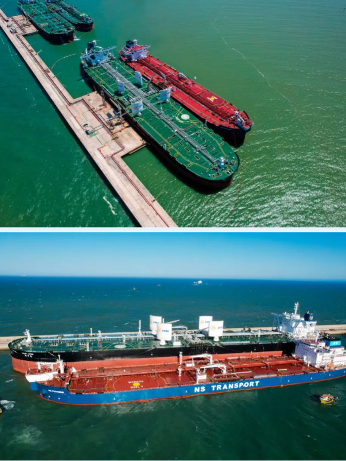 巴西当地时间2023年12月10日晚,招商轮船“新伊敦”轮在巴西阿苏港与中海油国贸自建DPST(动力定位穿梭油轮)“诺思先锋”轮顺利完成船对船过驳装货作业并安全离港。