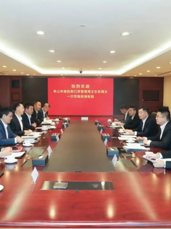 2022年5月31日,招商轮船董事长谢春林在舟山拜会舟山市市长徐仁标。舟山市副市长方铁道,舟山市政府秘书长何国忠;招商轮船副总经理胡斌,总船长兼安全总监李增忠等参加会见。