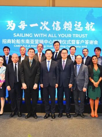 2024年7月3日,招商轮船在新加坡举办东南亚营销中心揭牌仪式暨客户答谢会。招商轮船副总经理黄茂生、副总经理兼外运集运总经理赵春吉、总经理助理兼香港明华总经理张金提出席活动。