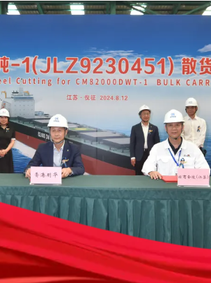 2024年8月12日,招商轮船向招商工业订造的4艘8.2万吨卡姆萨型系列散货船中的首制船“CM82000-1”开工仪式在江苏仪征举行。