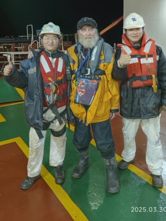 2025年3月30日,招商轮船旗下香港明华管理的ORE HONG KONG轮,成功救起因划艇故障而漂流14天的俄罗斯传奇探险家费奥多尔·科纽霍夫(Fedor Konyukhov)。20多天后,4月24日,这艘巨轮缓缓靠泊大连港,科纽霍夫终于与家人团聚,泪水与拥抱交织,谱写了一曲人道主义的赞歌。(想了解救援细节?点击这里→50小时惊心动魄!招商巨轮印度洋勇救探险家)