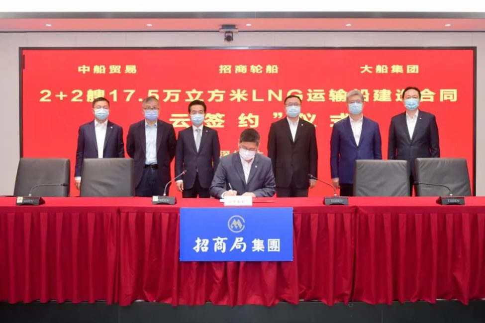 2022年3月31日,招商局集团旗下招商轮船与中国船舶集团旗下大船集团、中船贸易在深圳、上海、大连、北京四地,通过“云签约”方式签署“2+2”艘大型液化天然气(LNG)运输船建造合同。