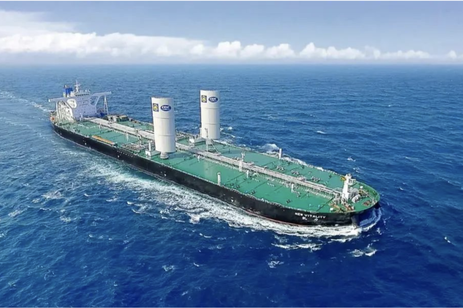 招商轮船在大船集团订造的全球首艘双翼动力风帆VLCC取名“新伊敦”在大连举行交接船暨命名仪式,旨在纪念150年前招商局创立之初的第一艘局轮“伊敦”轮。