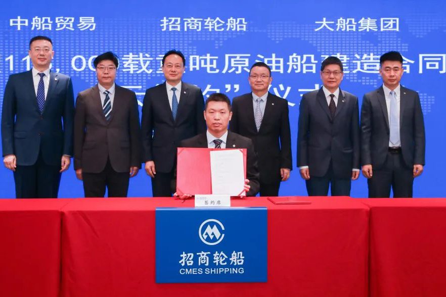 8月16日下午,招商局集团旗下招商轮船与中国船舶集团有限公司(以下简称“中国船舶集团”)旗下大连船舶重工集团公司(以下简称“大连造船”)、中国船舶工业贸易有限公司(以下简称“中船贸易”)在深圳举行5艘30.6万吨超大型原油船暨5艘11.5万吨阿芙拉型原油船建造合同签约仪式。