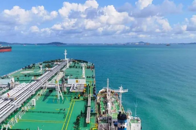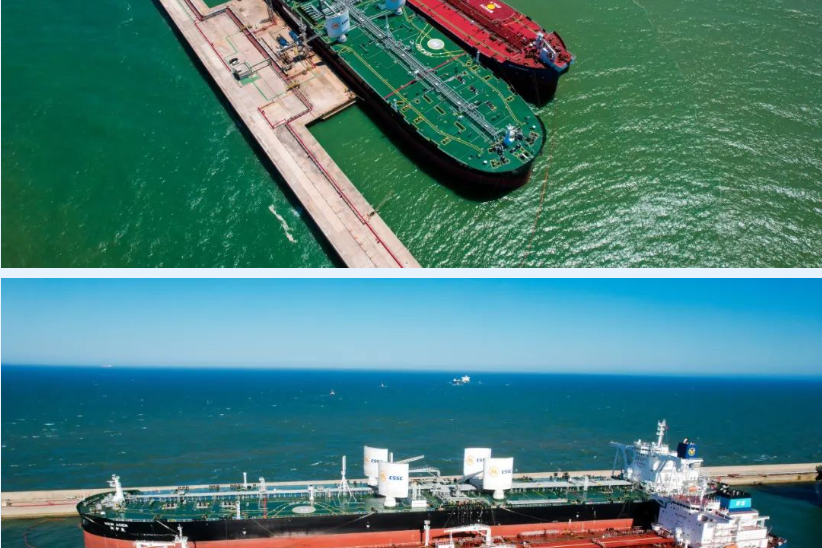 巴西当地时间2023年12月10日晚,招商轮船“新伊敦”轮在巴西阿苏港与中海油国贸自建DPST(动力定位穿梭油轮)“诺思先锋”轮顺利完成船对船过驳装货作业并安全离港。
