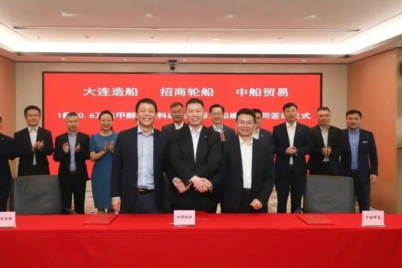 招商轮船与大连造船、中船贸易在深圳签署1艘30.6万吨甲醇双燃料动力智能VLCC建造合同。招商轮船总经理王永新、大连造船董事长杨志忠出席签约仪式并开展会谈交流。招商轮船副总经理徐晖、胡斌,大连造船副总经理何旭,中船贸易副总经理吴爱军出席签约仪式。