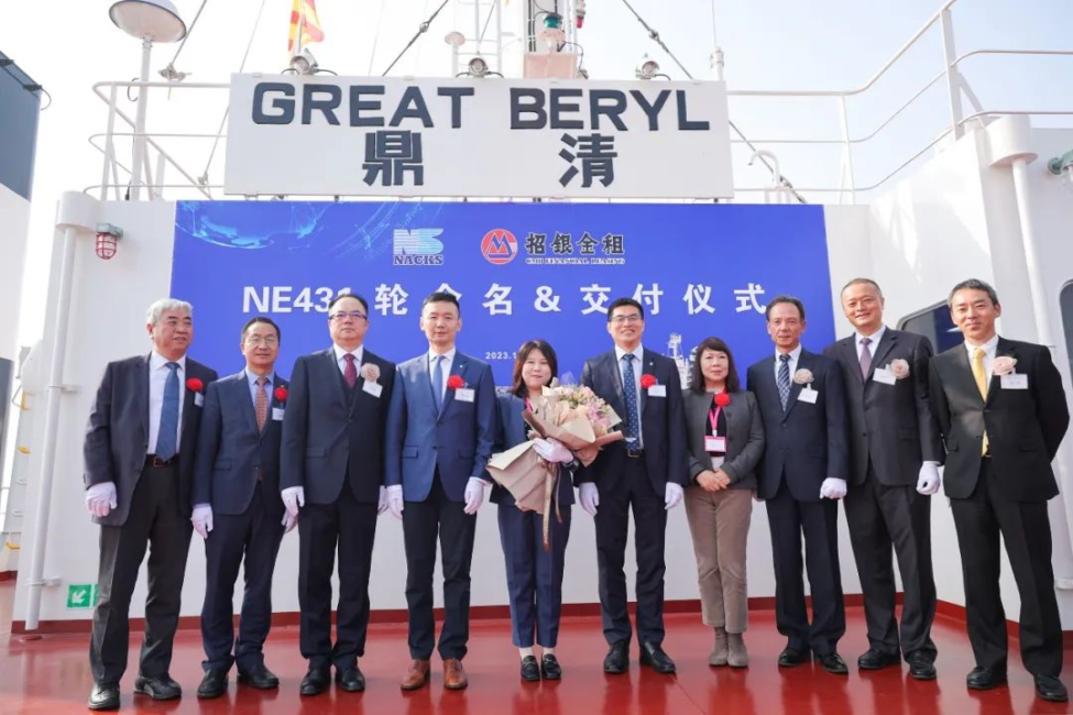 2023年9月19日上午,招商轮船订造的2400TEU集装箱船“中外运张家港”轮(SNL ZHANGJIAGANG)在江苏靖江举行交接船暨命名仪式。招商轮船总经理王永新出席仪式并为新船命名,纪委书记史秀丽女士为新船砍缆。