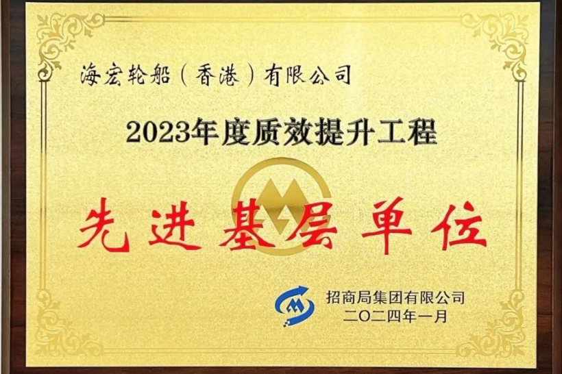 在招商局集团下发的《关于表彰集团2023年度质效提升工程先进单位和先进个人的通知》中,招商轮船所属海宏香港荣获“招商局集团2023年度质效提升工程先进基层单位”。