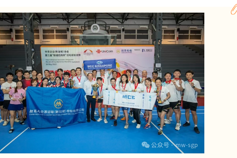 5月26日,由中国联通(新加坡)运营有限公司与招商局能源运输(新加坡)控股有限公司联合承办、由荣盛石化(新加坡)有限公司特别支持的中资企业(新加坡)协会第三届羽毛球友谊赛体育活动圆满落幕。
