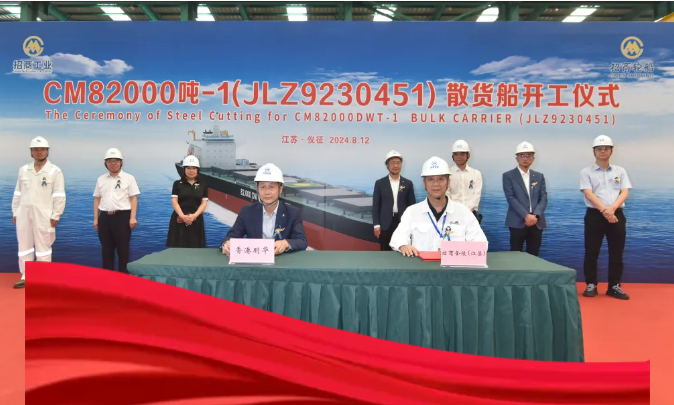 2024年8月12日,招商轮船向招商工业订造的4艘8.2万吨卡姆萨型系列散货船中的首制船“CM82000-1”开工仪式在江苏仪征举行。
