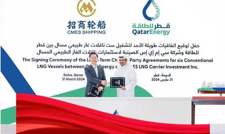2024年3月31日,招商轮船与卡塔尔能源公司 (QatarEnergy) 在卡塔尔首都多哈就6艘17.4万立方米大型LNG运输船项目签署长期期租协议。