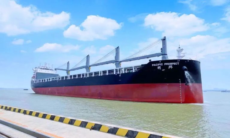2022年5月16日,招商轮船全球最大多用途重吊船“明兴”轮在扬州港扬帆首航,满载28套VESTAS陆上风力发电机组塔筒、总计近6.2万立方米“扬州制造”的风电设备,驶往目的地澳大利亚。“明兴”轮首载量一举创下扬州港单船装载风电塔筒设备数量之最,受到央视等媒体的关注。