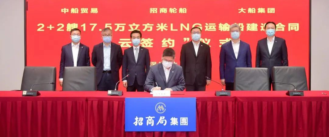 2022年3月31日,招商局集团旗下招商轮船与中国船舶集团旗下大船集团、中船贸易在深圳、上海、大连、北京四地,通过“云签约”方式签署“2+2”艘大型液化天然气(LNG)运输船建造合同。