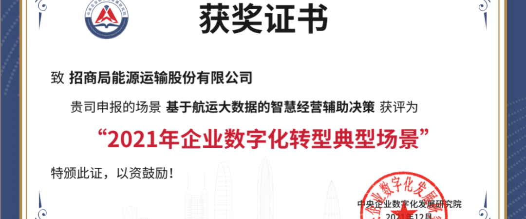 招商轮船数字化转型创新应用场景“船奇小智(MASCOT)——基于航运大数据的智慧经营平台”入选“2021年企业数字化转型典型场景”