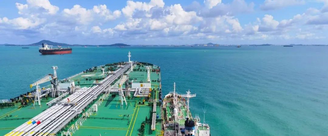 巴西当地时间2023年12月10日晚,招商轮船“新伊敦”轮在巴西阿苏港与中海油国贸自建DPST(动力定位穿梭油轮)“诺思先锋”轮顺利完成船对船过驳装货作业并安全离港。