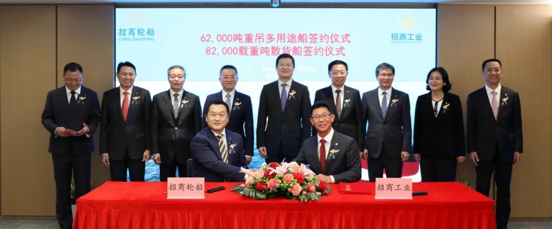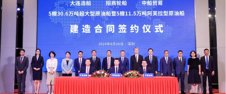 8月16日下午,招商局集团旗下招商轮船与中国船舶集团有限公司(以下简称“中国船舶集团”)旗下大连船舶重工集团公司(以下简称“大连造船”)、中国船舶工业贸易有限公司(以下简称“中船贸易”)在深圳举行5艘30.6万吨超大型原油船暨5艘11.5万吨阿芙拉型原油船建造合同签约仪式。