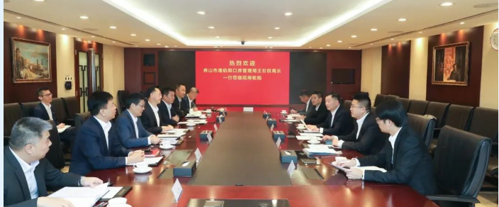 2022年5月31日,招商轮船董事长谢春林在舟山拜会舟山市市长徐仁标。舟山市副市长方铁道,舟山市政府秘书长何国忠;招商轮船副总经理胡斌,总船长兼安全总监李增忠等参加会见。