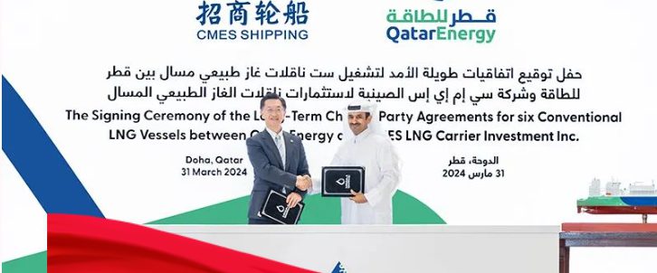 2024年3月31日,招商轮船与卡塔尔能源公司 (QatarEnergy) 在卡塔尔首都多哈就6艘17.4万立方米大型LNG运输船项目签署长期期租协议。