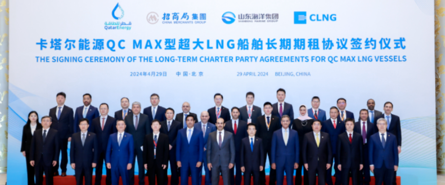 4月29日,招商局集团旗下招商轮船与卡塔尔能源公司(QatarEnergy)在北京就4艘27.1万立方米QC Max型超大LNG船舶签署长期期租协议。