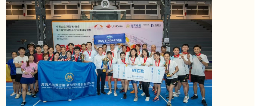 5月26日,由中国联通(新加坡)运营有限公司与招商局能源运输(新加坡)控股有限公司联合承办、由荣盛石化(新加坡)有限公司特别支持的中资企业(新加坡)协会第三届羽毛球友谊赛体育活动圆满落幕。
