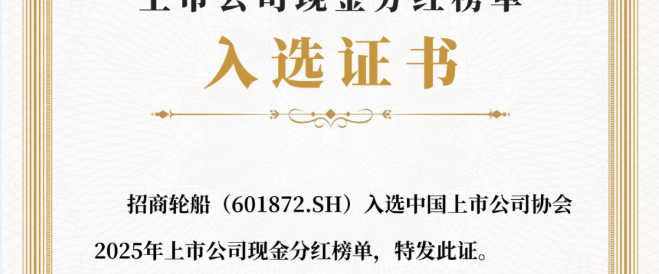 近日,中国上市公司协会编制发布《2025年上市公司现金分红榜单》。招商轮船凭借多年持续提高的分红比例和积极回报投资者的运营理念,入选“现金分红榜——股利支付率榜”。