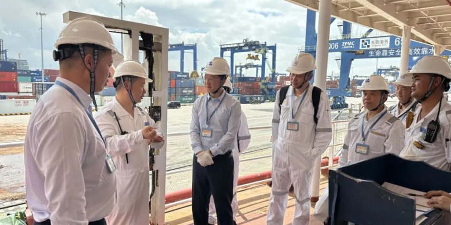 2023年6月24日,招商轮船总经理王永新在广州新沙港对“大企”轮进行安全检查并慰问船员。招商轮船副总经理、总船长兼安全总监胡斌,总经理助理兼香港明华总经理张金提陪同检查。
