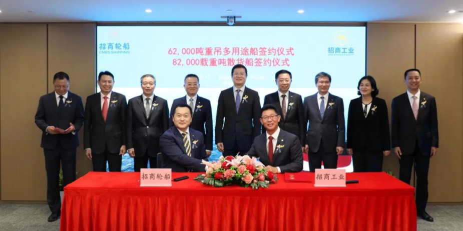 招商轮船与大连造船、中船贸易在深圳签署1艘30.6万吨甲醇双燃料动力智能VLCC建造合同。招商轮船总经理王永新、大连造船董事长杨志忠出席签约仪式并开展会谈交流。招商轮船副总经理徐晖、胡斌,大连造船副总经理何旭,中船贸易副总经理吴爱军出席签约仪式。