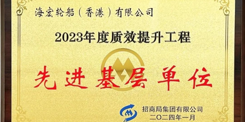 在招商局集团下发的《关于表彰集团2023年度质效提升工程先进单位和先进个人的通知》中,招商轮船所属海宏香港荣获“招商局集团2023年度质效提升工程先进基层单位”。