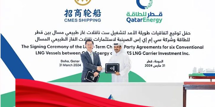 2024年3月31日,招商轮船与卡塔尔能源公司 (QatarEnergy) 在卡塔尔首都多哈就6艘17.4万立方米大型LNG运输船项目签署长期期租协议。