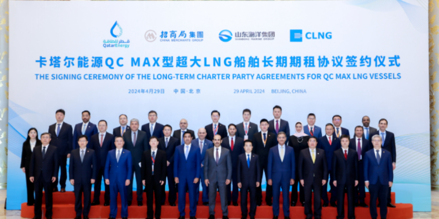 4月29日,招商局集团旗下招商轮船与卡塔尔能源公司(QatarEnergy)在北京就4艘27.1万立方米QC Max型超大LNG船舶签署长期期租协议。