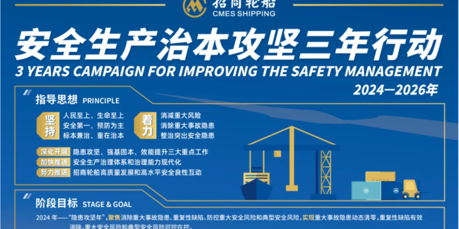 自安全生产治本攻坚三年行动启动以来,招商轮船紧紧围绕“以人为本,安全第一,预防为主,综合治理”的安全工作方针,全面提升安全管理水平。结合工作实际,招商轮船制定了安全生产治本攻坚三年行动工作方案,不断夯实安全生产工作基础,助力本质安全型企业建设。