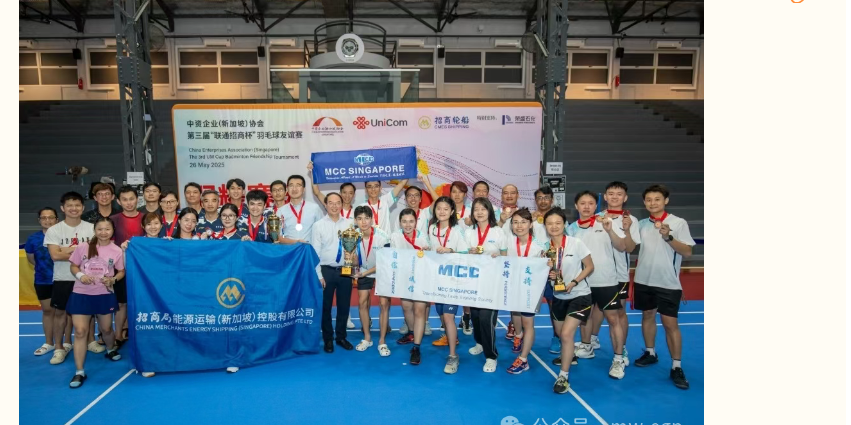 5月26日,由中国联通(新加坡)运营有限公司与招商局能源运输(新加坡)控股有限公司联合承办、由荣盛石化(新加坡)有限公司特别支持的中资企业(新加坡)协会第三届羽毛球友谊赛体育活动圆满落幕。