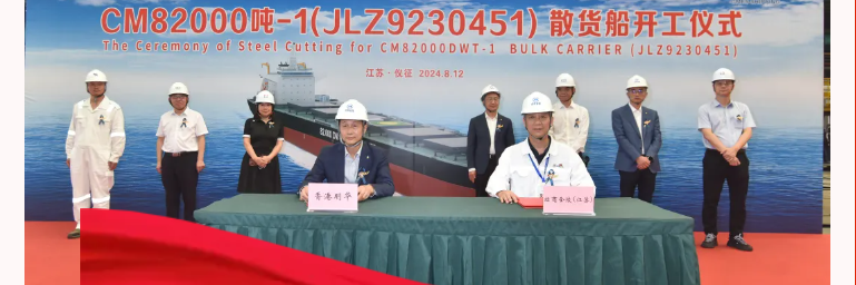 2024年8月12日,招商轮船向招商工业订造的4艘8.2万吨卡姆萨型系列散货船中的首制船“CM82000-1”开工仪式在江苏仪征举行。
