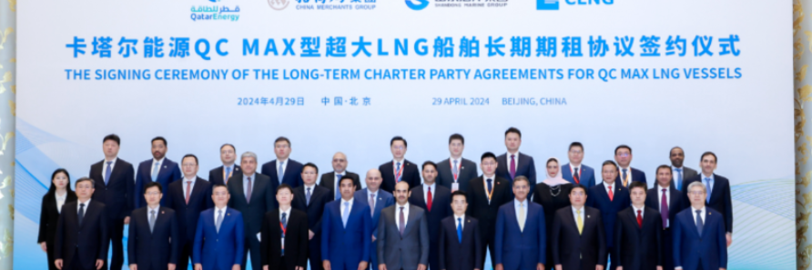4月29日,招商局集团旗下招商轮船与卡塔尔能源公司(QatarEnergy)在北京就4艘27.1万立方米QC Max型超大LNG船舶签署长期期租协议。