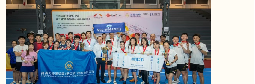 5月26日,由中国联通(新加坡)运营有限公司与招商局能源运输(新加坡)控股有限公司联合承办、由荣盛石化(新加坡)有限公司特别支持的中资企业(新加坡)协会第三届羽毛球友谊赛体育活动圆满落幕。