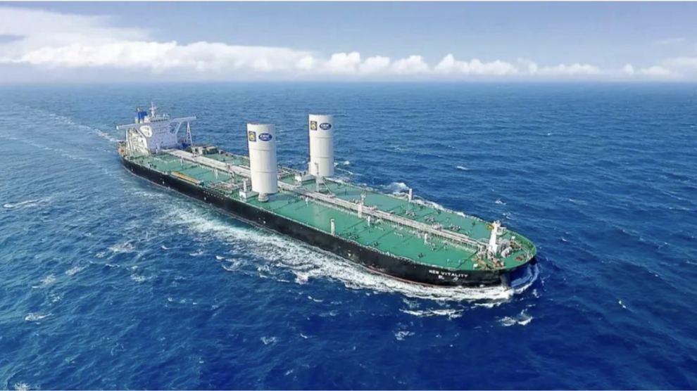 招商轮船在大船集团订造的全球首艘双翼动力风帆VLCC取名“新伊敦”在大连举行交接船暨命名仪式,旨在纪念150年前招商局创立之初的第一艘局轮“伊敦”轮。