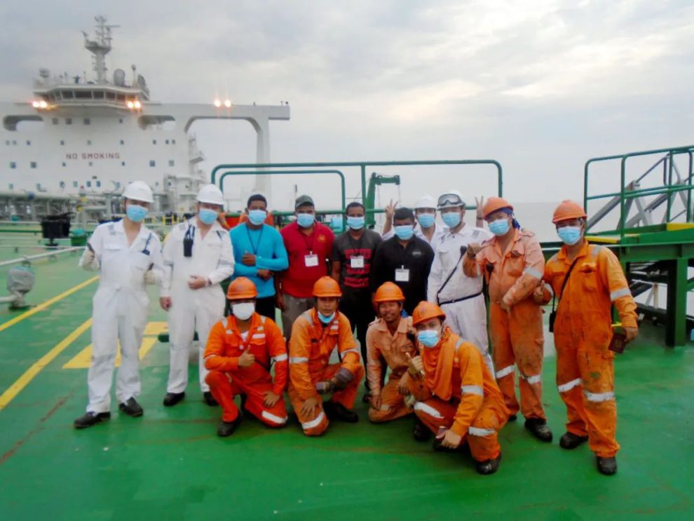 巴西当地时间2023年12月10日晚,招商轮船“新伊敦”轮在巴西阿苏港与中海油国贸自建DPST(动力定位穿梭油轮)“诺思先锋”轮顺利完成船对船过驳装货作业并安全离港。