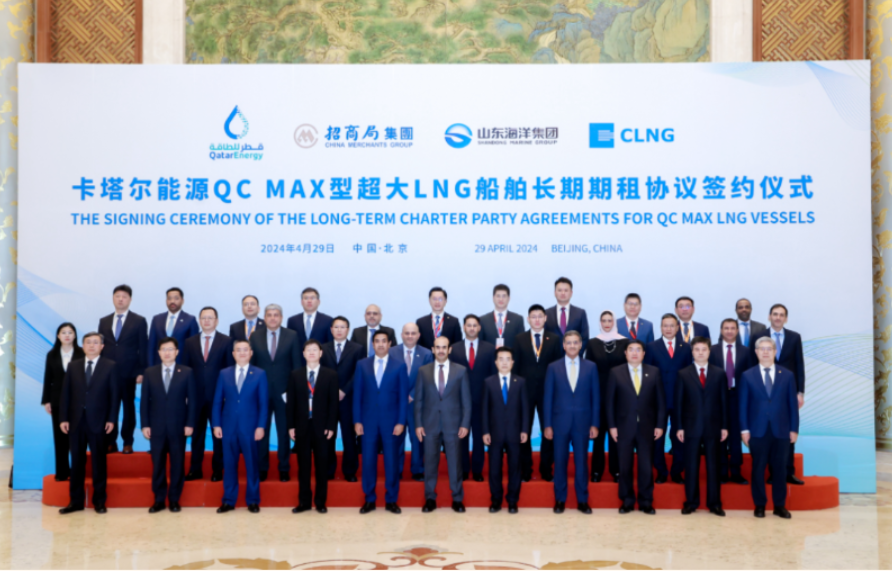 4月29日,招商局集团旗下招商轮船与卡塔尔能源公司(QatarEnergy)在北京就4艘27.1万立方米QC Max型超大LNG船舶签署长期期租协议。