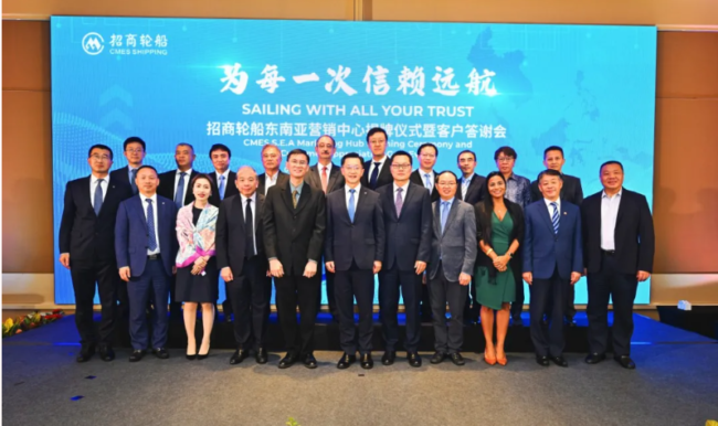 Details2024年7月3日,招商轮船在新加坡举办东南亚营销中心揭牌仪式暨客户答谢会。招商轮船副总经理黄茂生、副总经理兼外运集运总经理赵春吉、总经理助理兼香港明华总经理张金提出席活动。