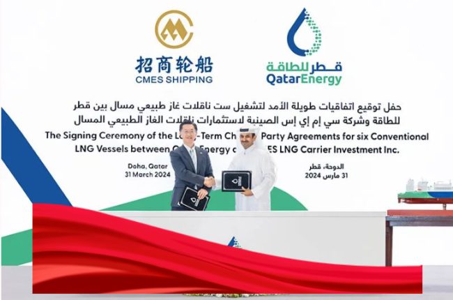 2024年3月31日,招商轮船与卡塔尔能源公司 (QatarEnergy) 在卡塔尔首都多哈就6艘17.4万立方米大型LNG运输船项目签署长期期租协议。